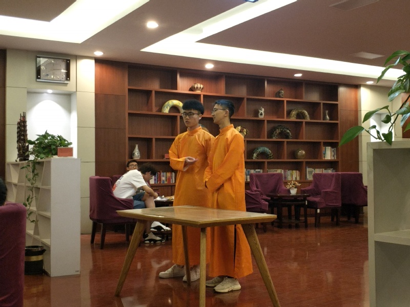 由日新曲艺社韩泽玉、崔珈铭同学带来的相声《白事会》,再次将气氛推到向高潮,绘声绘色的表演不仅仅承载着对于生活的深入了解,还有能直面生活的平凡与惨淡,并能发觉无穷乐趣与积极向上的心态。石小龙同学带来的朗诵《侠客行》使听的人不仅心旷神怡,顿时也有了仗剑天涯,替天行道的冲动。王靖宇带来的朗诵《在路上》听完以后感慨油然而生,人的一生不就是沉浸在不断地成长,奔波之中么?