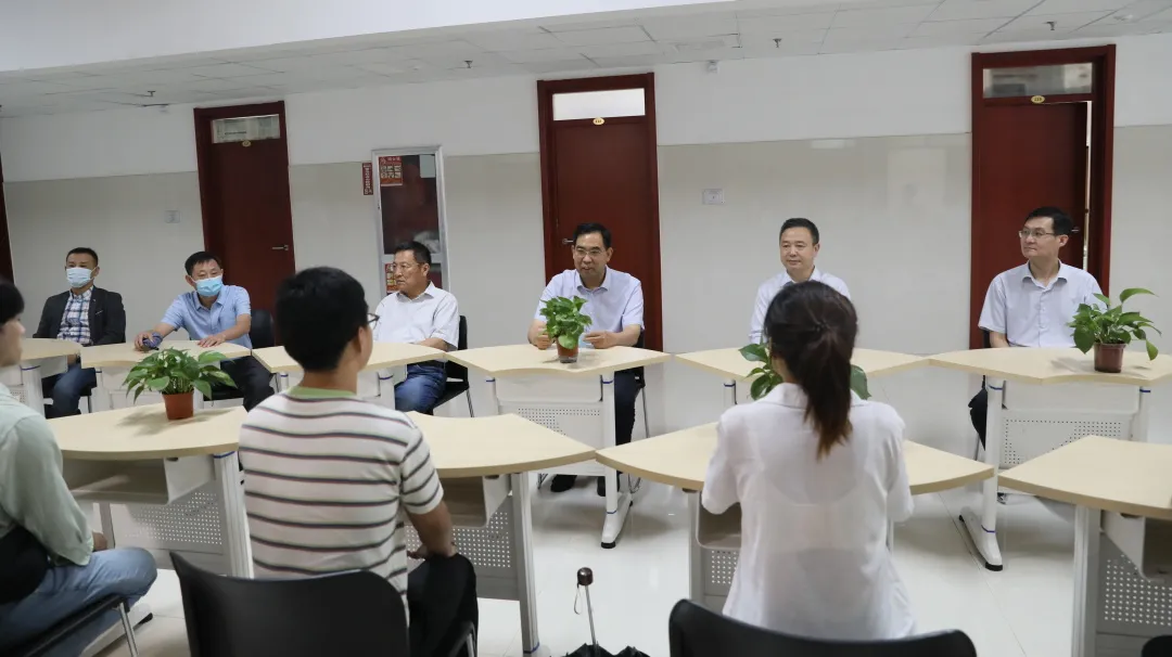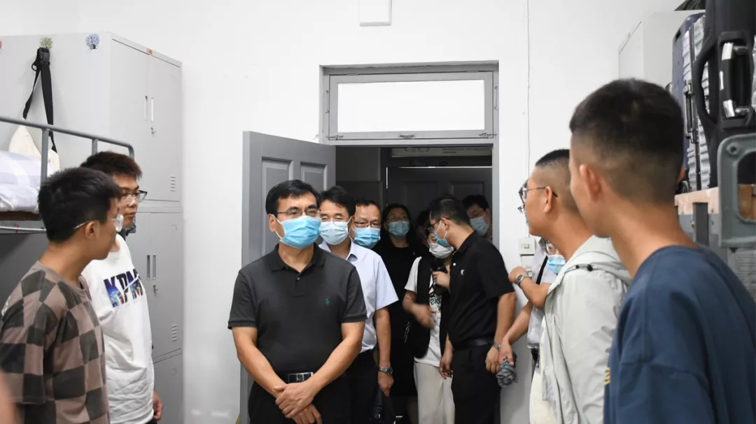 胡兴禹、苏守波一行来到东校区10号学生公寓看望已经入住的研究生新生。胡兴禹与同学们亲切交谈,详细了解他们的个人情况,勉励研究生继续刻苦学习,学有所长,争取读博深造,将来为国家和社会多作贡献。在教工餐厅,胡兴禹一行与新生代表进行了座谈交流。胡兴禹简要介绍了学校基本情况,对同学们提出殷切希望,一要爱党爱国爱校,二要塑造健康身心,三要养成良好品格,四要聚焦学习主业切实用功。